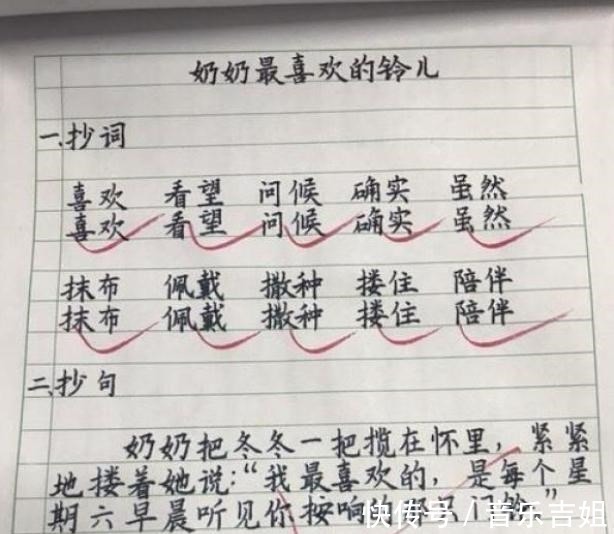 老师每天都会批改大量作业,面对大多数写得还不是很好的小学生字体,虽说老师能够理解,但是看到这样整齐的书写,一定还是赏心悦目的,心情为之愉快的。